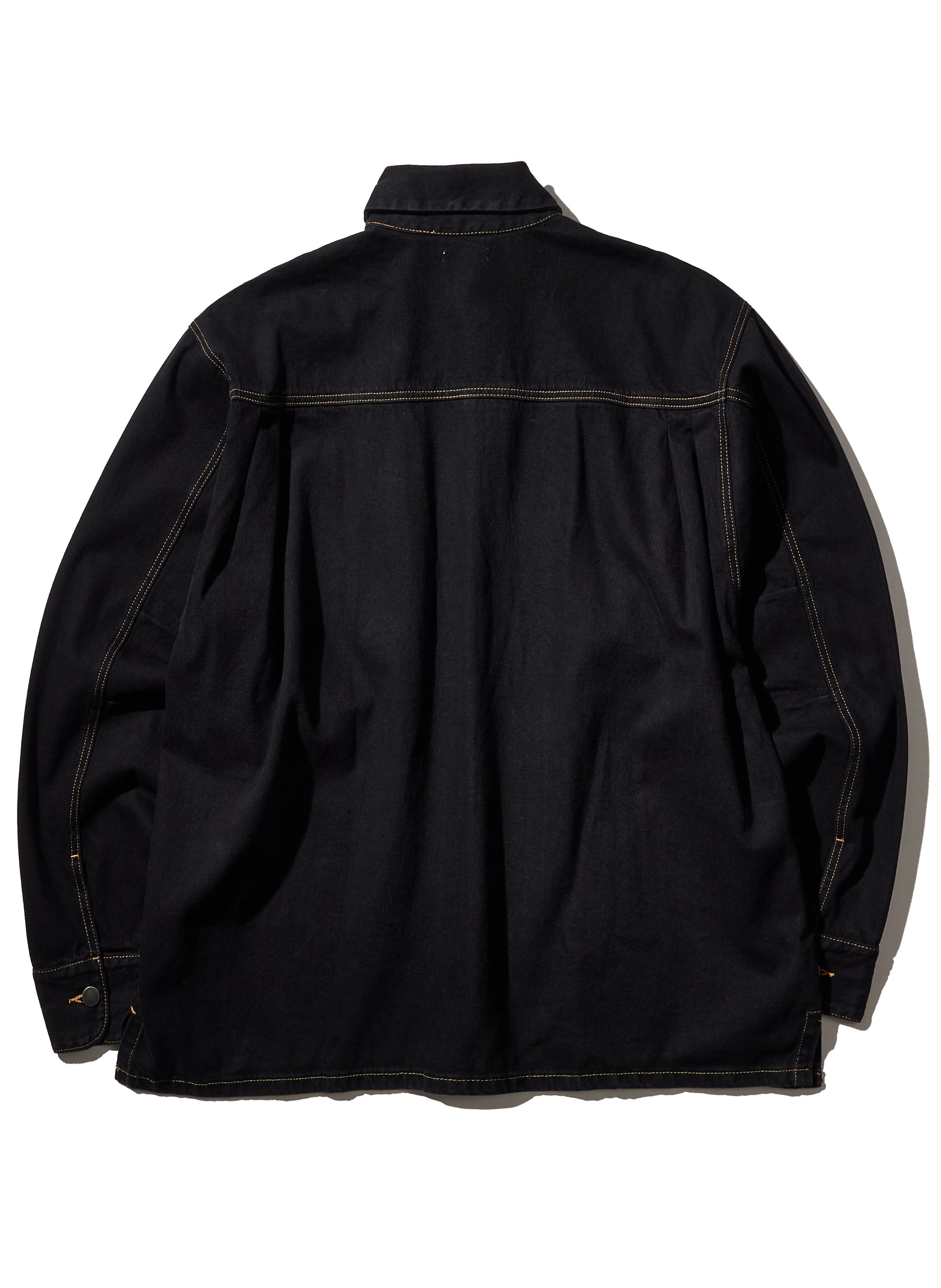 ソリッドブラックと洗いのかかったブラックの2色展開。オリジナルのタックボタンがデザインアクセントになった至高のデニムシャツ。