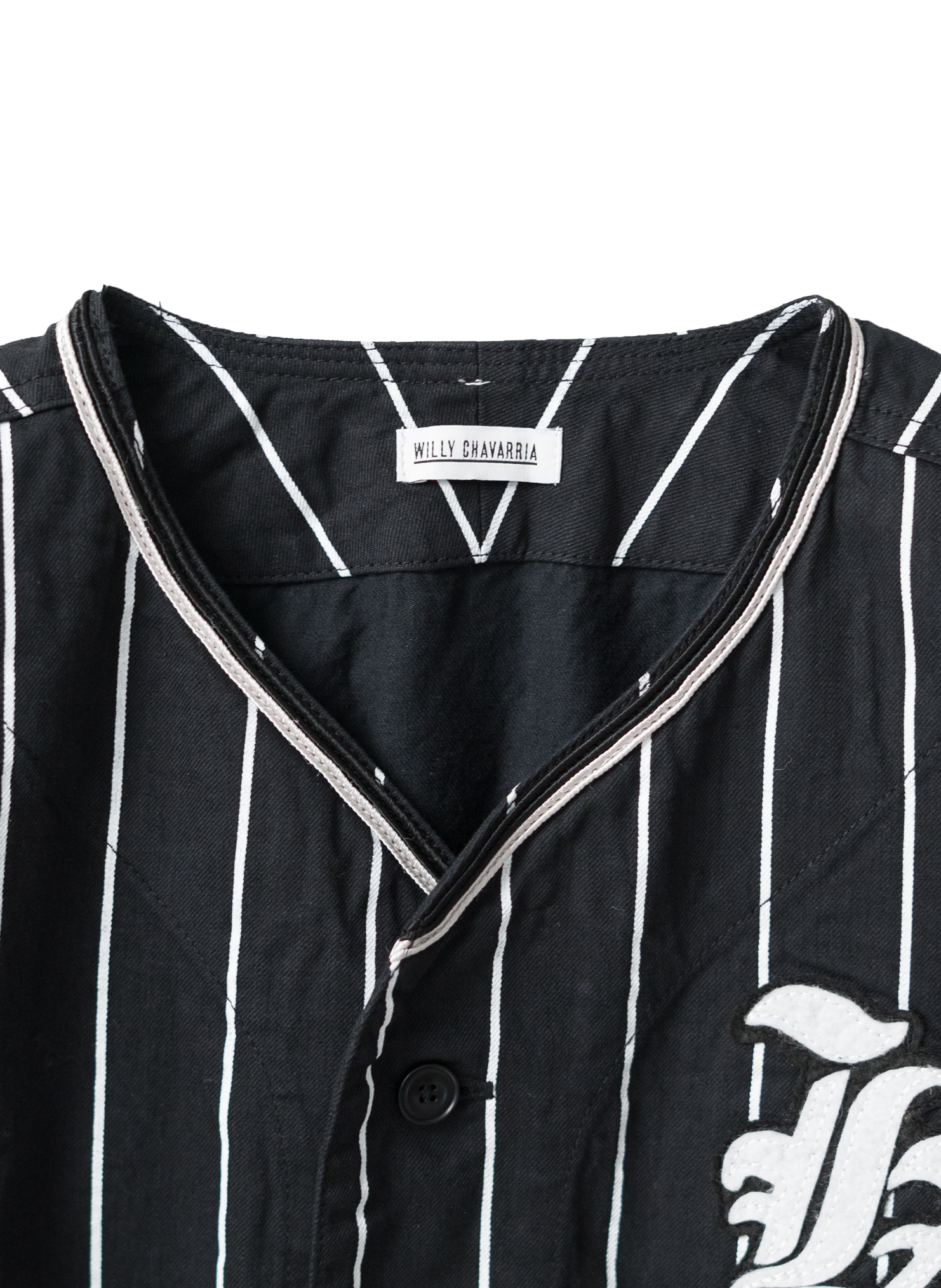 ベースボールシャツをモチーフに、胸のLAの刺繍にはフェルトを使用するなど細部に渡ってWILLY CHAVARRIAのこだわりを魅せる。