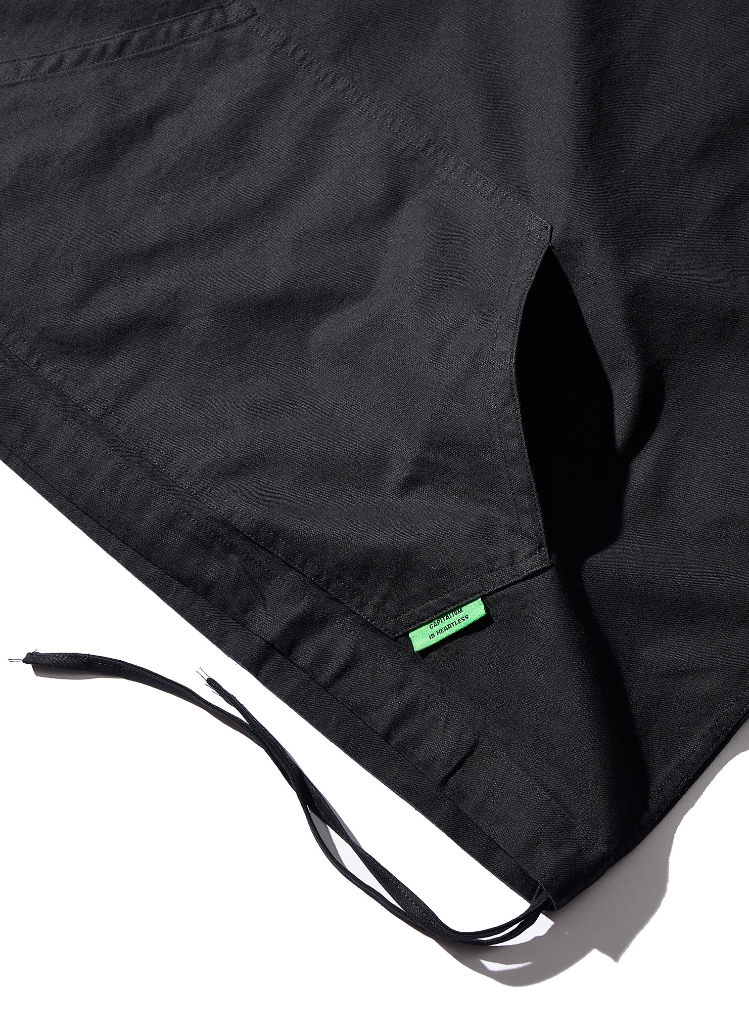 囚人服をイメージして作られたJAIL SHIRTは裾口ドローコード付きで、絞ったスタイルも善い。バックスタイルには、デザイナーイチオシのグラフィック。JAIL PANTS,JAIL SHORTとセットアップでの着用もおすすめ。