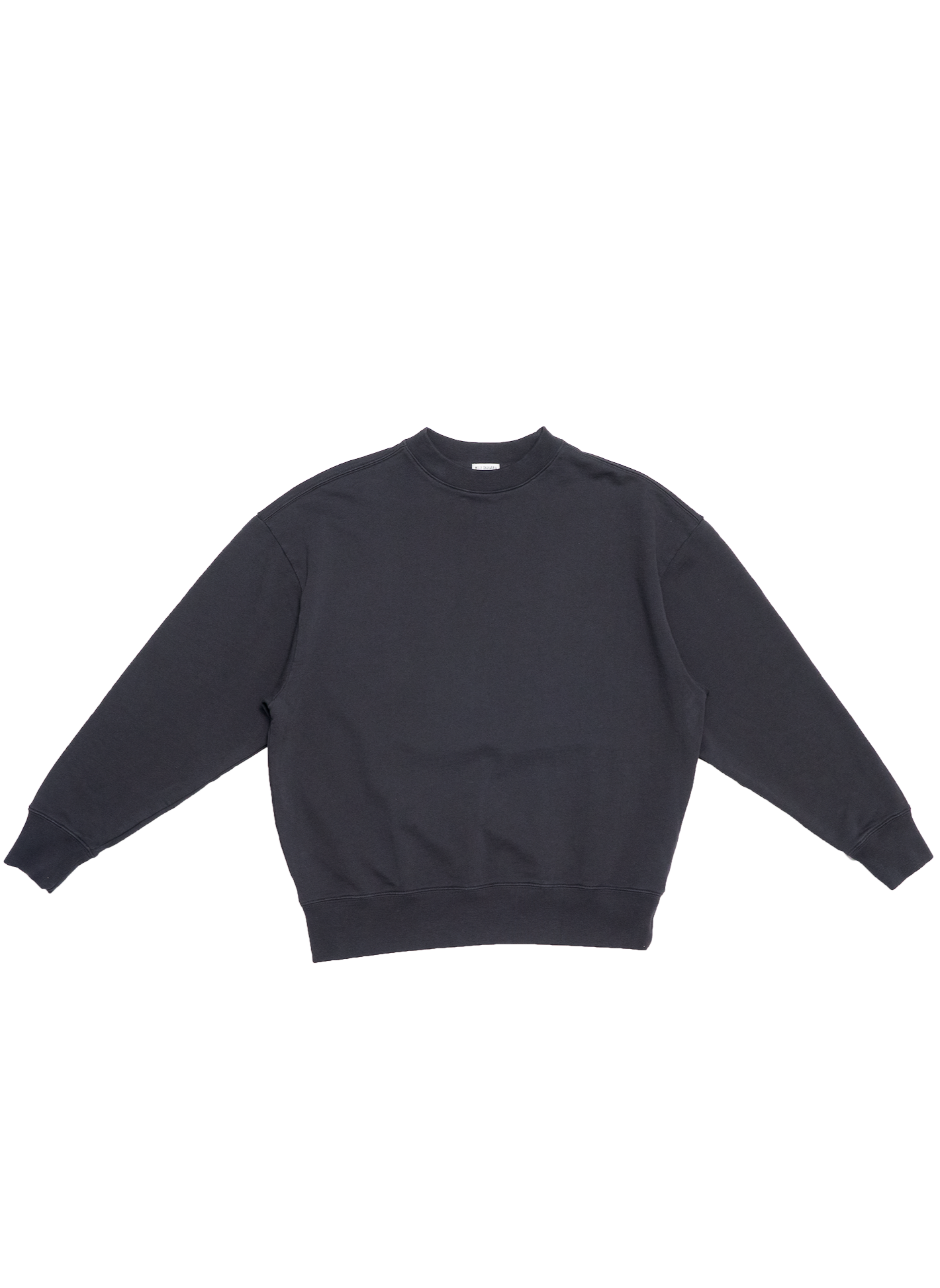 上質なペルビアンコットンを使用した裏毛スウェット。加工にも拘りなめらかで上品な風合い。詰まった衿ぐりに、太めの袖口と裾リブが上品な印象。シルエットはワイド過ぎずベーシックな型に。バックネックの配色ロゴがデザインポイント。再構築された普遍的なデザイン。